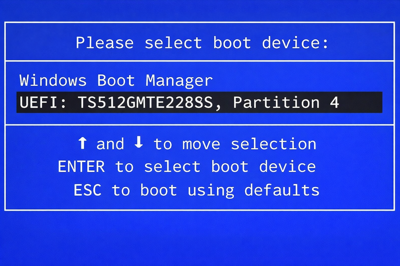 看到開機選單後透過方向鍵選擇下圖TS512GMTE228SS這顆硬碟的第4分割區