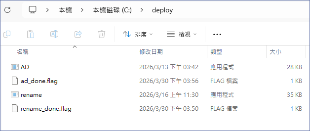 在執行rename.exe之後下旗幟rename_done.flag,避免每次開機反覆執行變更電腦名稱